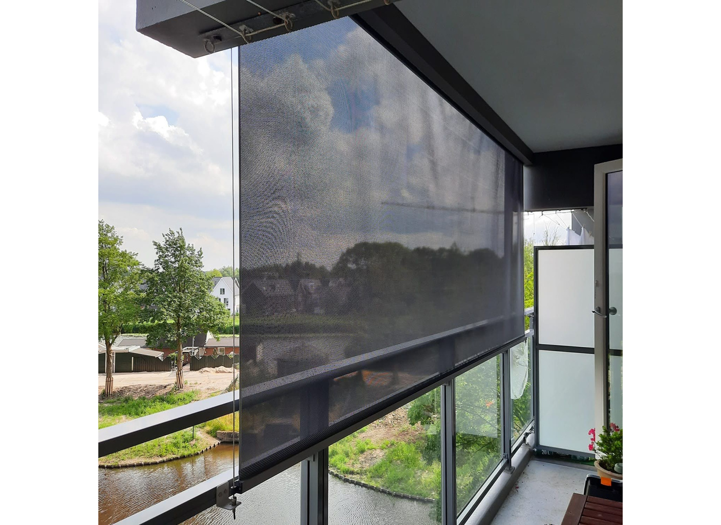 De screens weren fel zonlicht en warmte, verminderen schittering en creëren extra privacy, terwijl het zicht naar buiten behouden blijft. Hierdoor ontstaat een aangenaam en beschut balkon, ook bij wisselende weersomstandigheden.