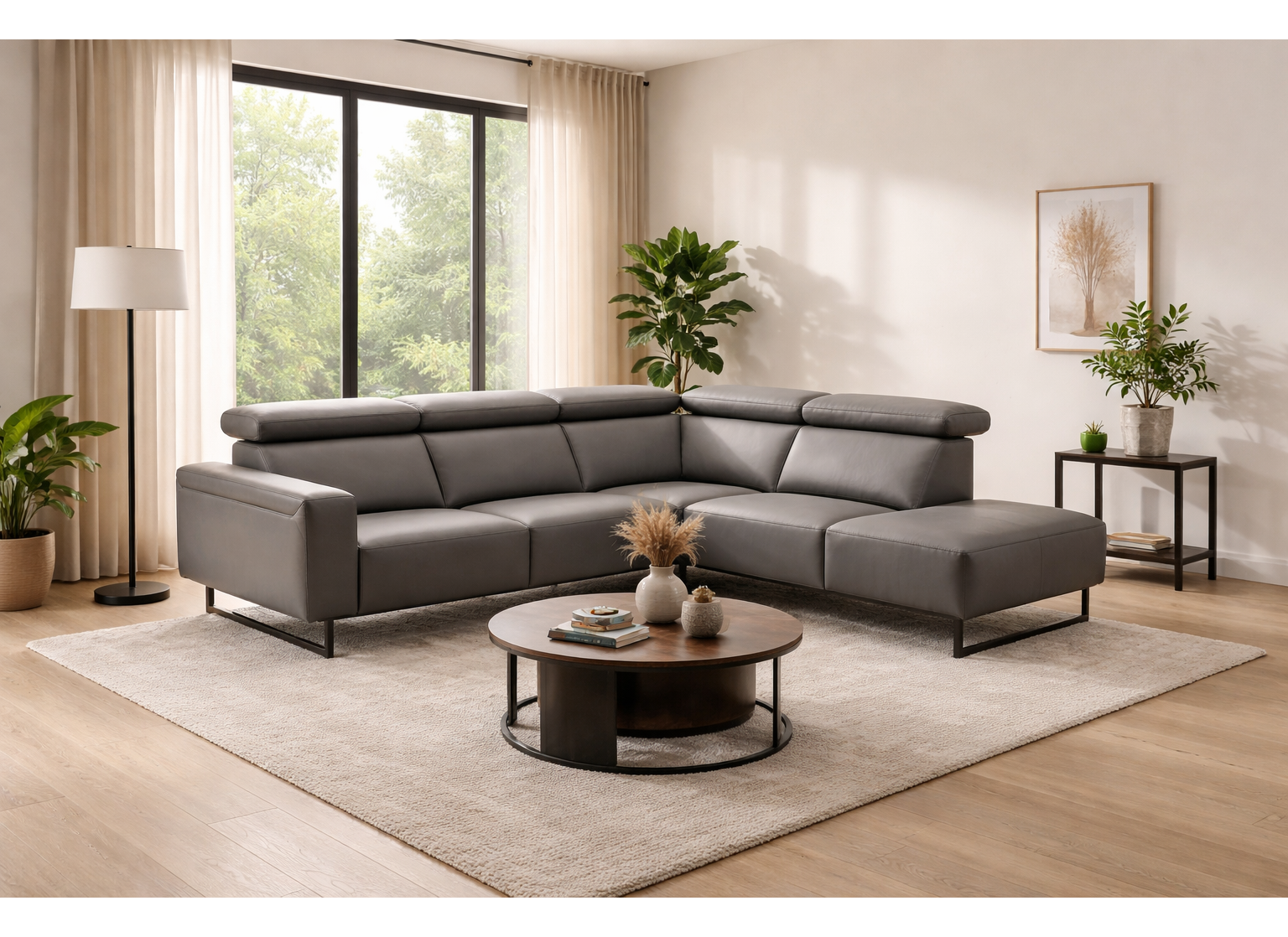 Breng comfort en design samen met deze stijlvolle hoekbank. Met zijn strakke lijnen, verstelbare hoofdsteunen en luxe uitstraling is dit dé blikvanger voor een moderne woonkamer.